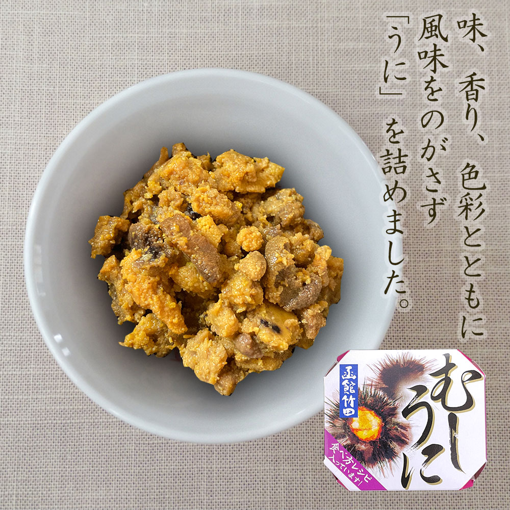 味、香り、色彩、うにの風味をぎゅっと凝縮したむしうにの缶詰。