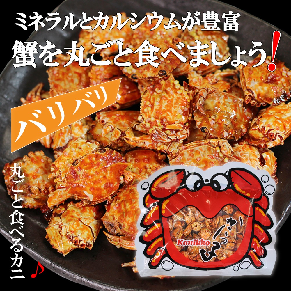 小さなかにをまるごと食べられるバリバリ食感のおやつです。