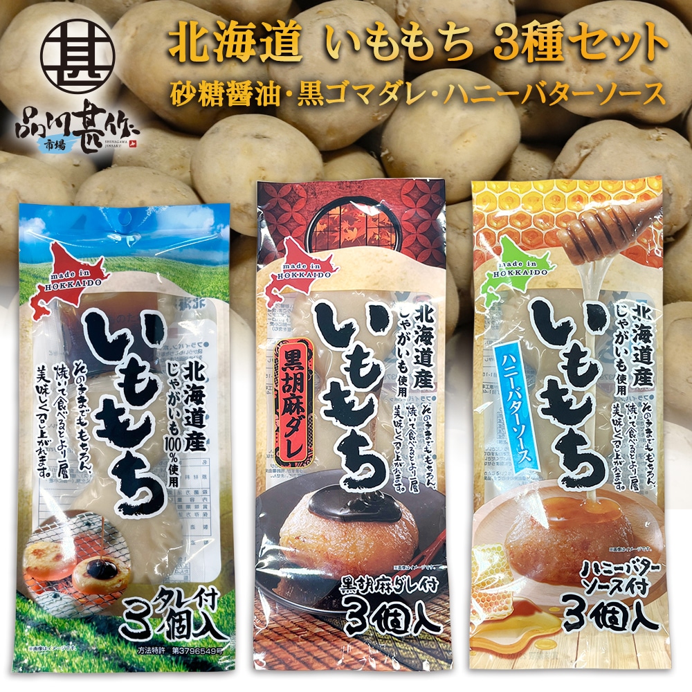 いももち 3種セット 各種3玉入り 砂糖醤油タレ 黒胡麻ダレ ハニーバターソース
