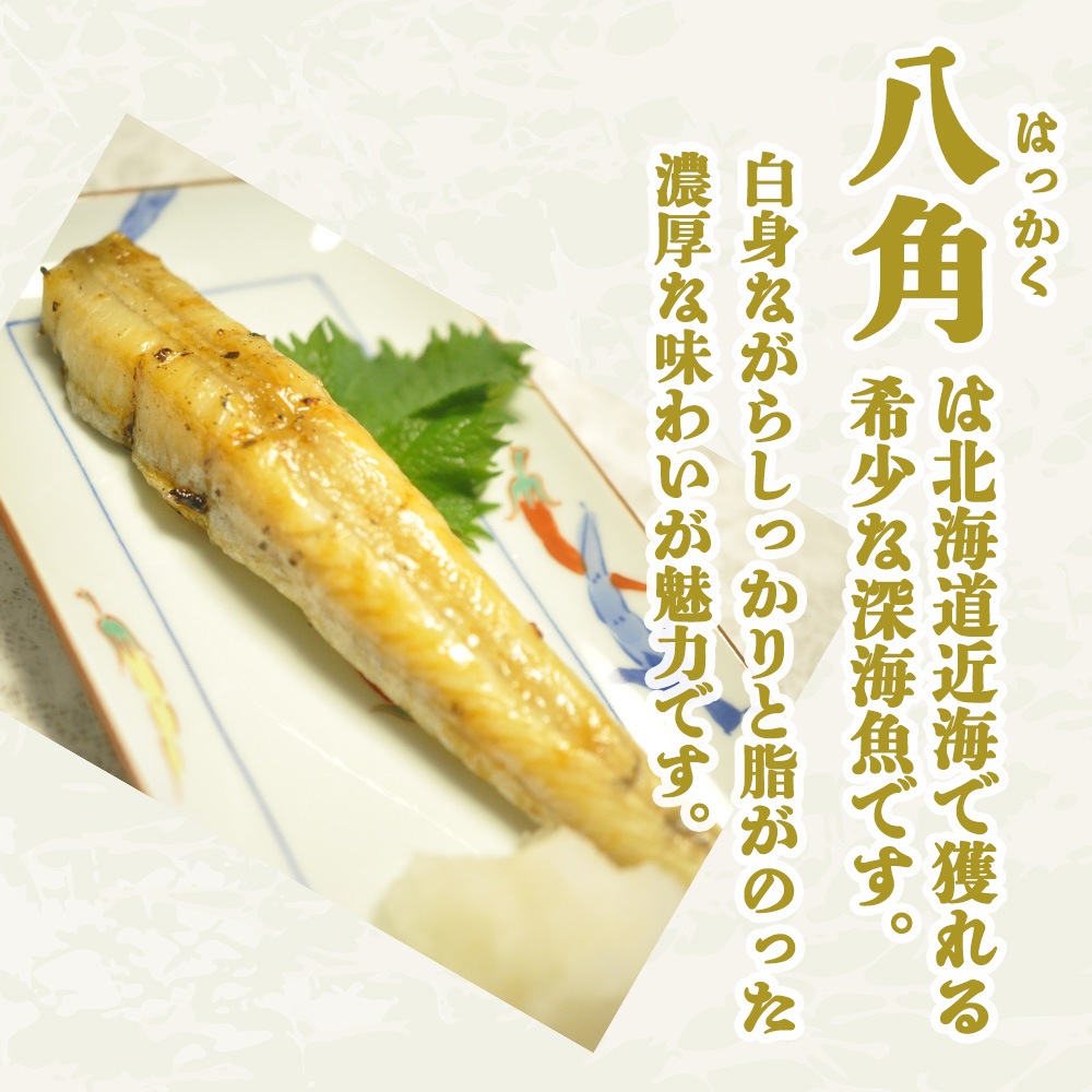 北海道近海で獲れる八角は、脂のりが良く旨みが濃厚で、焼くと香ばしく仕上がります。